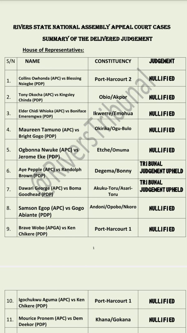 It is the same crafty and legal blunders that have also characterised the judgment of the Court of Appeal in the Rivers State National Assembly Elections Petitions appeal in which the elections of members of the National Assembly from Rivers State who were elected on the platform of the Peoples Democratic Party (PDP) were annulled on the basis of noncompliance with the electoral guidelines, chief among which was the non-use of the controversial card readers.
