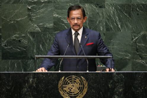 Brunei’s (Muda) Sultan Hassanal Bolkiah addresses the 69th United Nations General Assembly at United Nations Headquarters in New York. Brunei has officially declared public celebrations of Christmas illegal in the country.