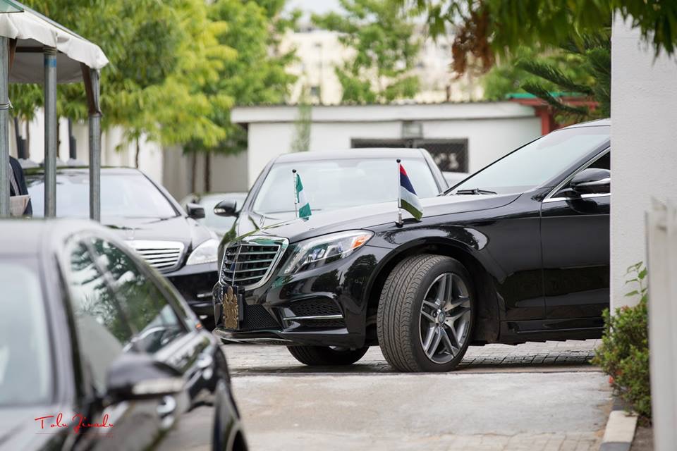 The convoy included eight Mercedes cars, two BMW cars, one black Range Rover Sports Utility Vehicle, and one pick-up vehicle of the Federal Road Safety Commission (FRSC).