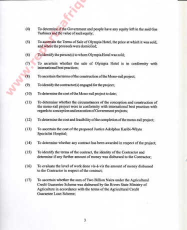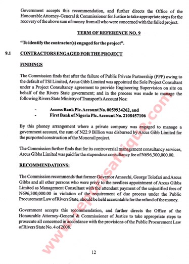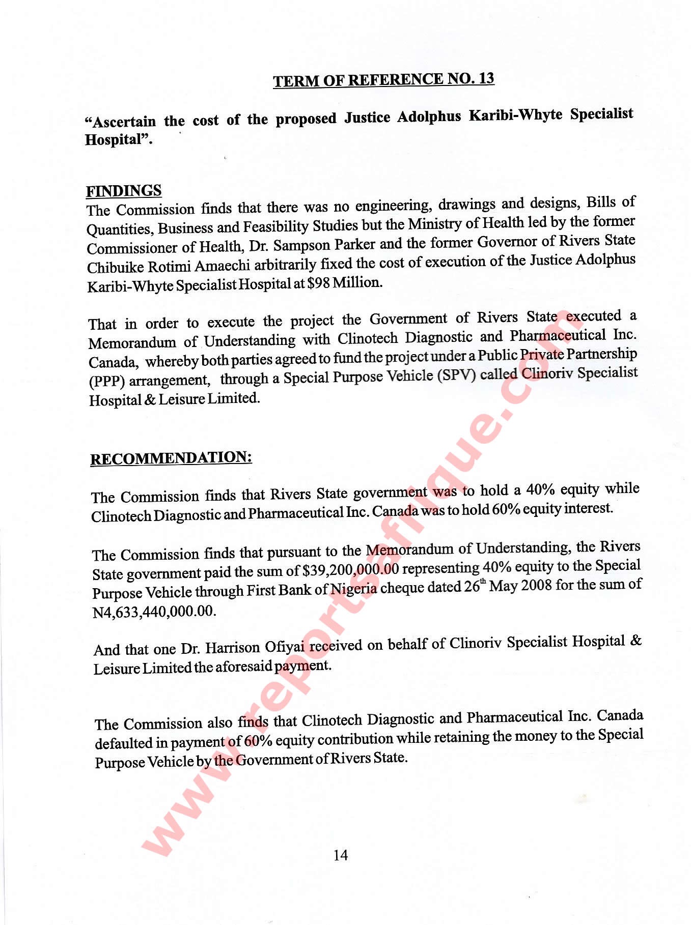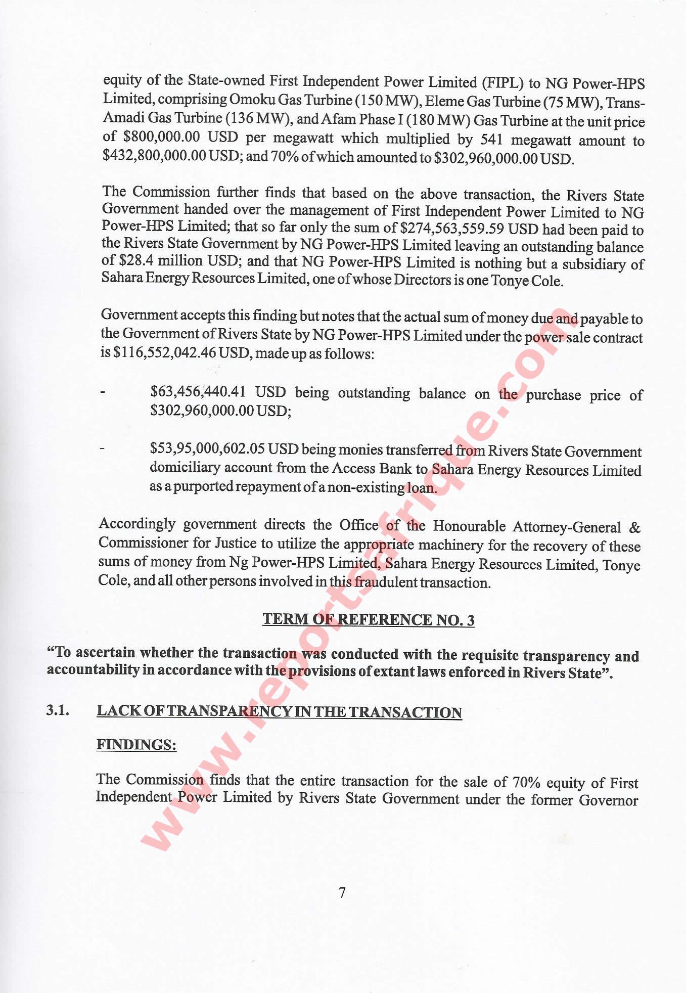 The document, the White Paper indicating Mr. Amaechi in a corruption investigation. exclusively obtained by REPORTS AFRIQUE also indicted Mr. Tonye Cole, managing director of Sahara Energy Plc, for questionably dealings with the Rivers State government under Amaechi.