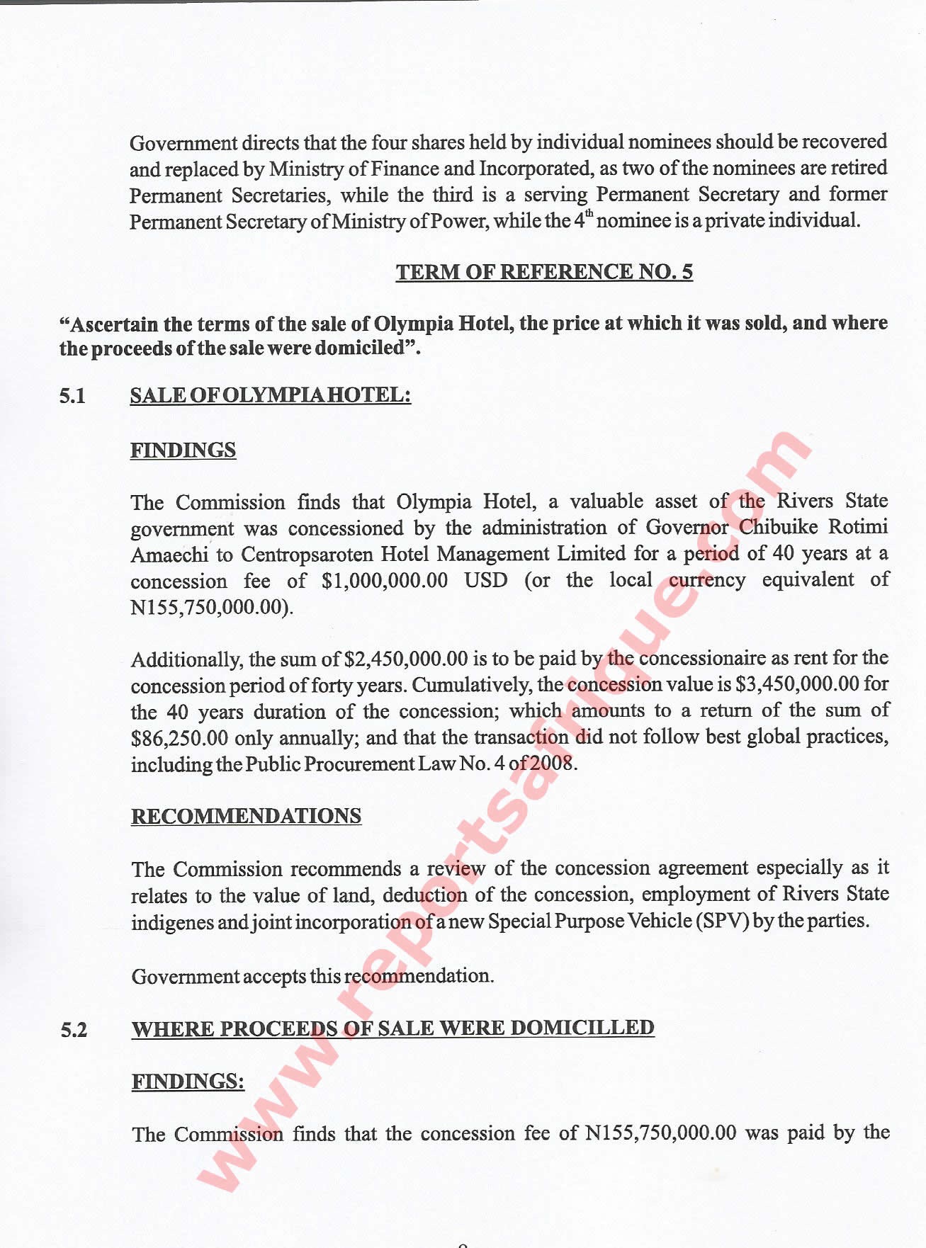 Mr. Cole is named in the questionable sale of four gas turbines belonging to the Rivers State government and the 40-year concession deal of Olympia Hotel for the sum of $86,250 per year. In the document, Mr. Cole’s company, NG-Power HPS Limited is indicted for receiving a payment of $53 million as repayment for a non-existent loan from the Rivers State Government.