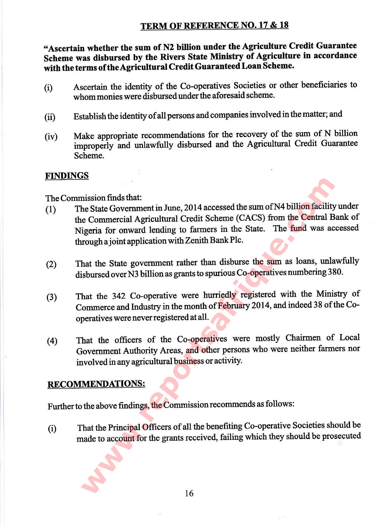Amaechi is also indicted in the corrupt disbursement of N2 billion designated for Agric Credit loans.