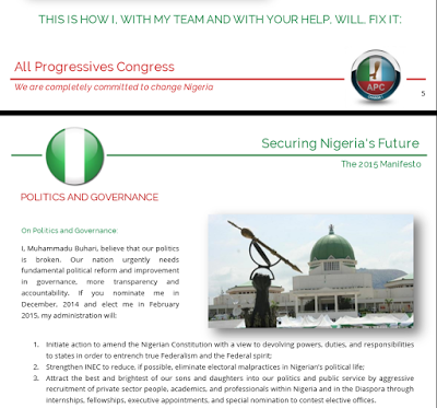 The first promise on the APC eighteen page document is to restructure Nigeria. Read the except below. PMB said
