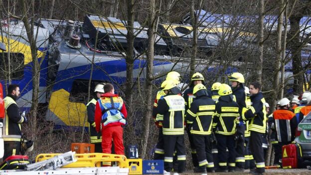 Each train can hold up to 1,000 passengers and they are commonly used by children traveling to school at around the time the crash occurred, just before 7 a.m. However, fewer than 200 people were on board Tuesday because of regional holidays to celebrate Carnival. Schools in Bavaria were also closed because of the weeklong winter break.