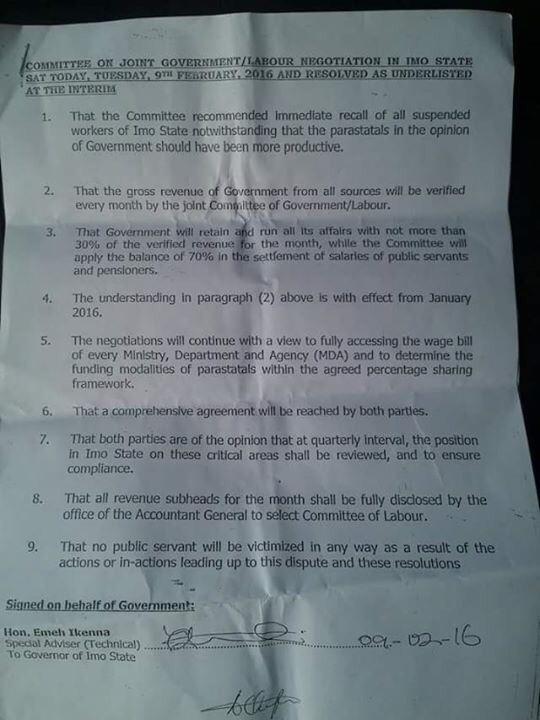 Governor Rochas Okorocha has announced the recall of the over 3000 workers in 19 parastatals of the State in the heat of a protest by members of the Nigeria labour congress.