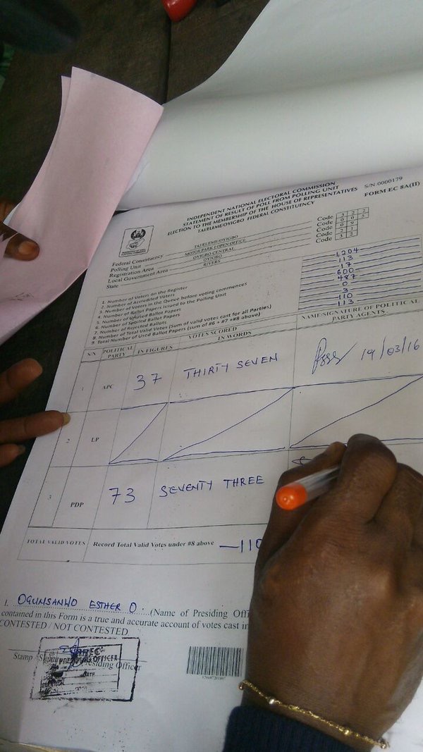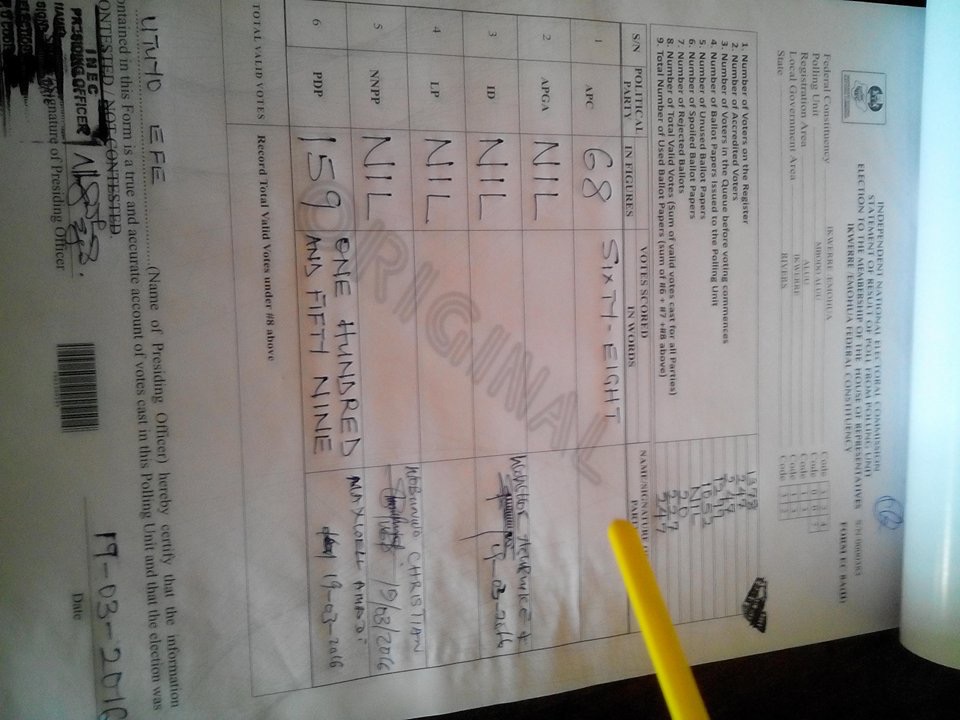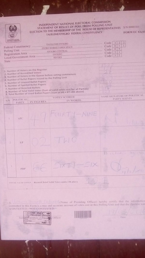 House of Reps Result for Unit 3 Ward 14 akuku Oru LGA.