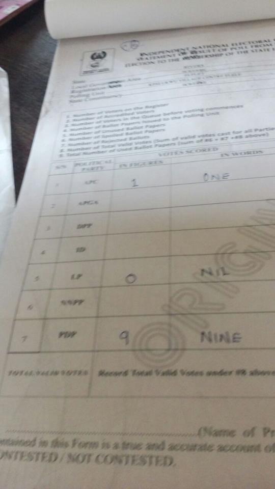 House of Assembly Result for Unit 3 Ward 14 akuku Oru LGA.