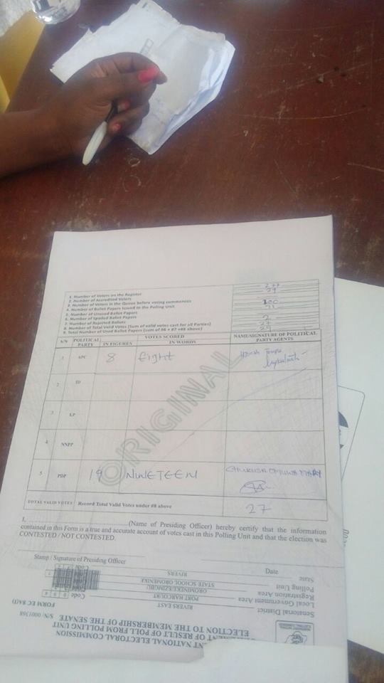 House of Reps Result for Unit 3 Ward 14 akuku Oru LGA.