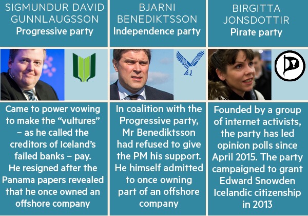 The poll found a record 43 per cent of voters would back the Pirates, far more than the 8 per cent who would support Mr Gunnlaugsson’s Progressives or the 22 per cent favouring his centre-right coalition partners, the Independence party.