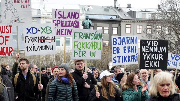 People demonstrate against Iceland’s Prime Minister Sigmundur David Gunnlaugsson in Reykjavik, Iceland in this April 5, 2016 files. REUTERS/Stigtryggur Johannsson/Files©Reuters