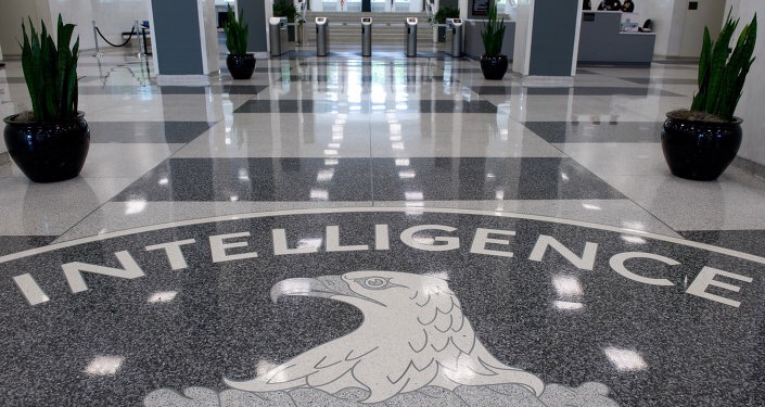 The Central Intelligence Agency (CIA) logo is displayed in the lobby of CIA Headquarters in Langley, Virginia.