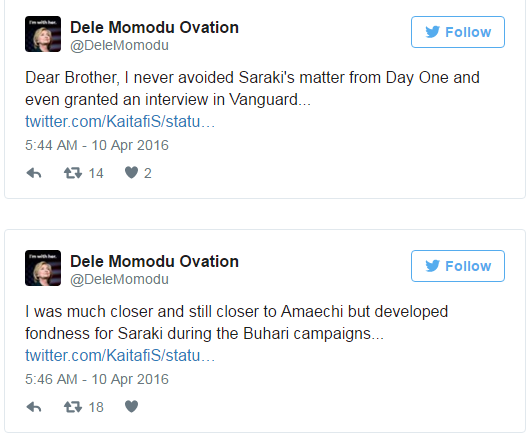 Following his second Open Memo to the President titled: “A Second Desperate Memo to President Buhari” on matters arising in the country, Ovation International Publisher, Dele Momodu has taken to his social media account on Twitter to show support for the embattled Senate President, Dr. Abubakar Bukola Saraki.