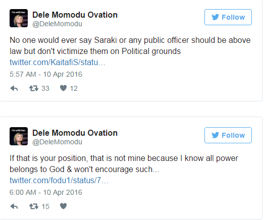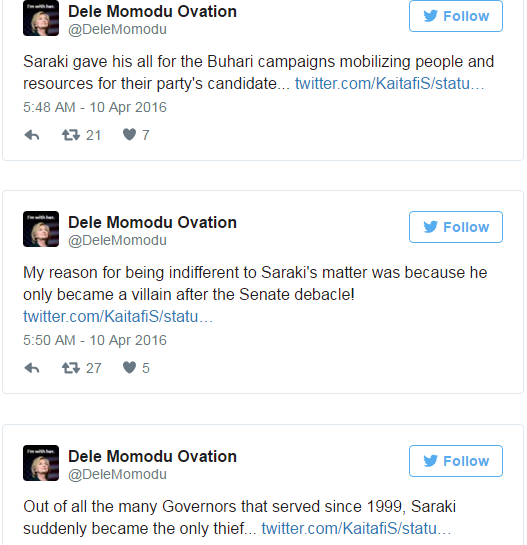 In his tweets, Dele Momodu maintained that the trials of the Senate President, especially his case at the Code Of Conduct Tribunal, CCT, against the Code of Conduct Bureau, CCB, over false declaration of asset was a Politically motivated one.
