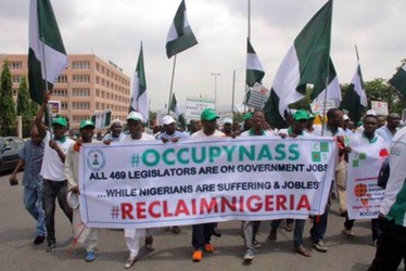The protesters; “Occupy National Assembly” also called on the legislators to conclude all issues on the 2016 budget, return their luxury cars and cut their N115 billion budget.