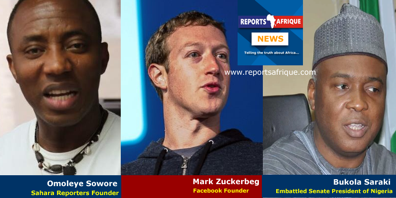 The embattled publisher of Sahara Reporters, Omoyele Sowore, has taken his blackmailing business to a new height, this time, by accusing the CEO of facebook, Mark Zuckerberg, of collecting bribe from the Nigerian Senate President, Dr. Bukola Saraki.