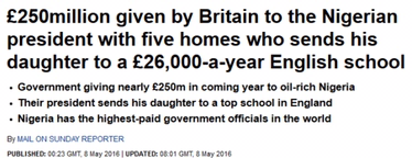 The Government is giving nearly £250million in the coming year to oil-rich Nigeria, whose president sends his daughter to a £26,000-a-year English school.