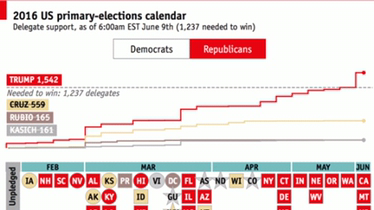 As if weary of a primary tussle in which the outcome has long been obvious, Democratic voters knocked it on the head on June 7th. Bernie Sanders, whose refusal to admit defeat defies electoral mathematics, hoped to win at least four of the last six states up for grabs, including the biggest, California. But Hillary Clinton whupped him; she won the Golden State by a 13-point margin, also New Jersey, New Mexico and South Dakota.
