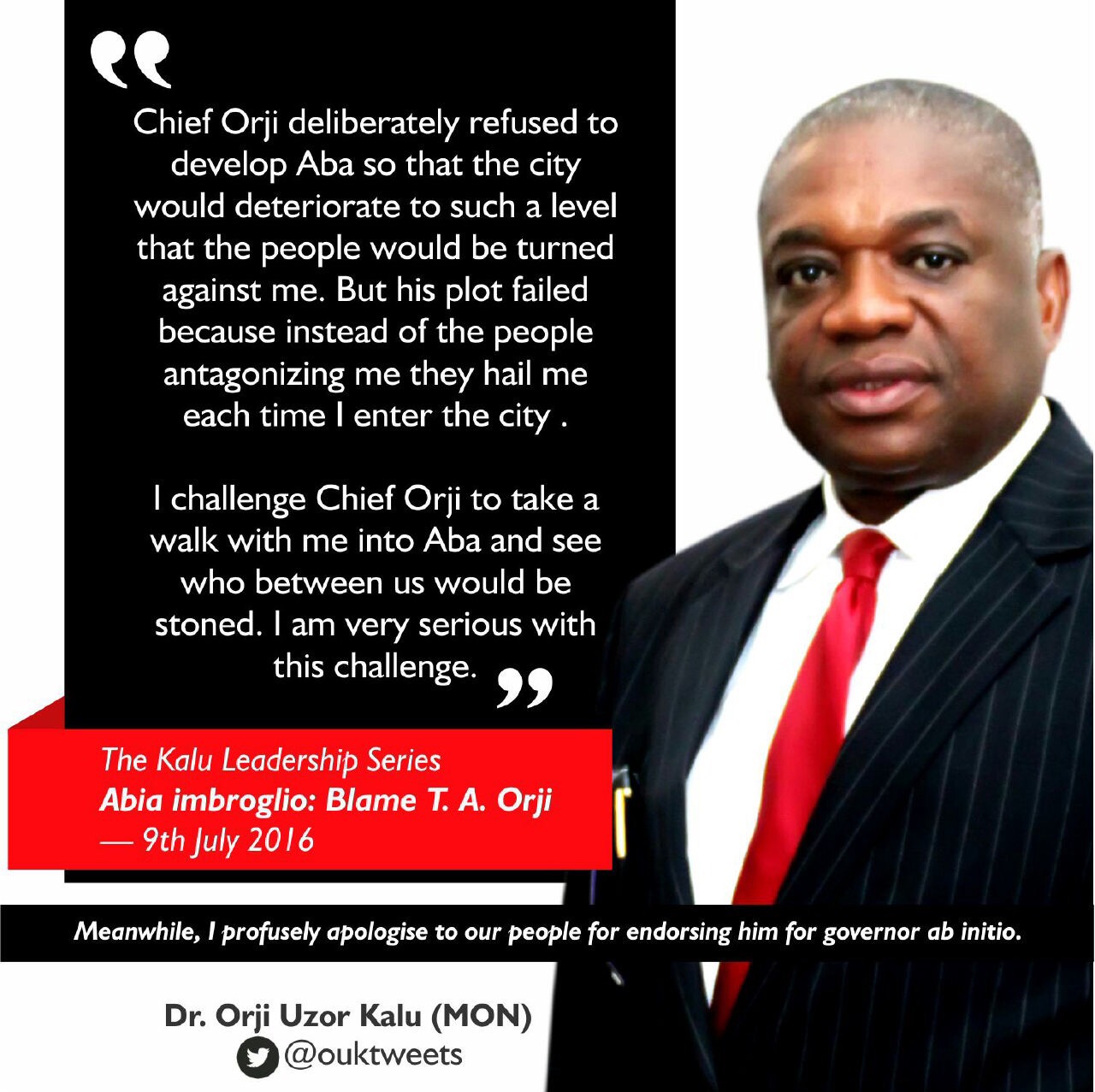 I challenge Chief Orji to take a walk with me into Aba and see who between us would be stoned. I am very serious with this challenge.