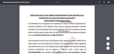 “In continuation of its assignment, the Committee on Audit of Defence Equipment Procurement (CADEP) in the Nigerian Armed Forces, analysed procurement contracts awarded by or for the Nigerian Army between 2007 and 2015.”