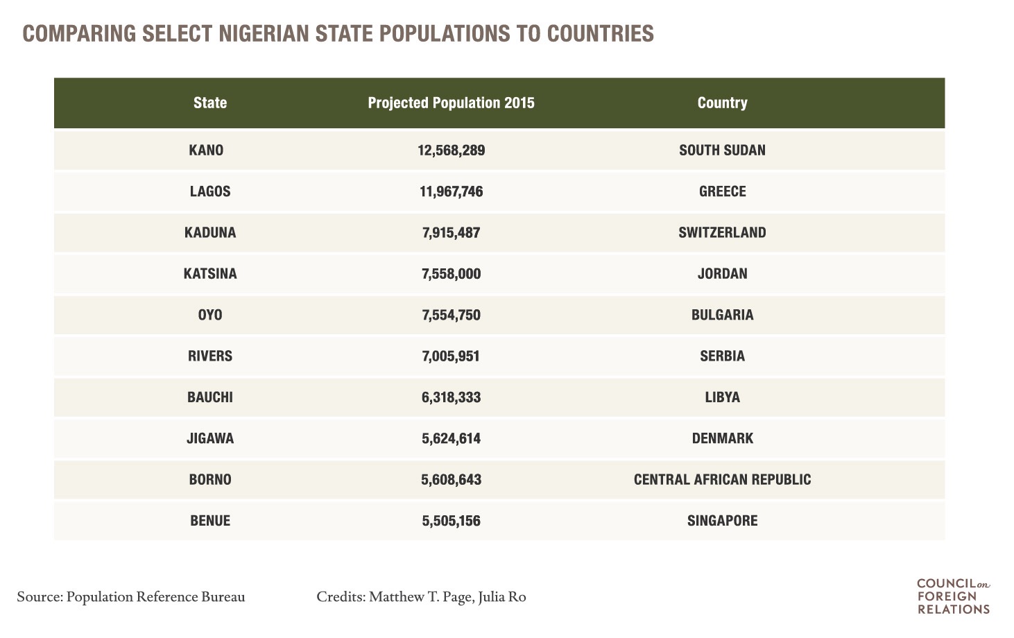 State governments nevertheless can play a central role in facilitating much-needed economic growth. The recent transformation of Lagos—one of the world’s fastest-growing megacities—from dystopia to regional economic hub is largely a result of good state governance. Adjacent Ogun state, home to several big industrial facilities, has benefited from Lagos’s economic development. (Note: Hard data is lacking on GDP of individual states because a Nigerian government effort to recalculate it in the wake of the country’s 2014 rebasing exercise has stalled).