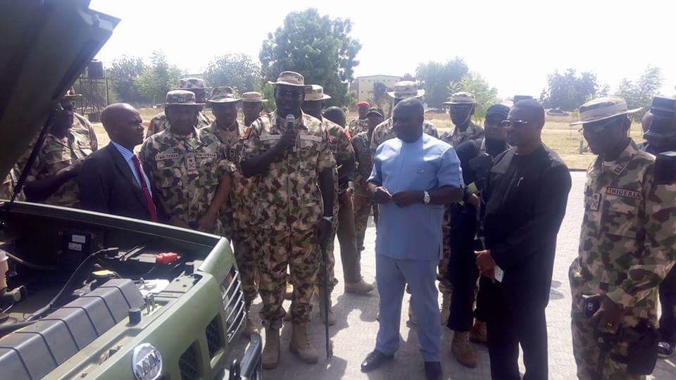 Earlier today, the Chairman of Innoson Group Chief Dr Innocent Ifediaso Chukwuma OFR presented the new IVM G12 to the Chief of Army Staff Lt Gen T Y Buratai at the Tactical Headquarters of Operations in Maiduguri, Borno State.
