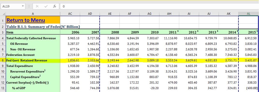 According to CBN statistical bulletin, available on the CBN website, the federal government retained revenue for 2015 was N3.431 trillion. Five percent of this is N171.55 billion.