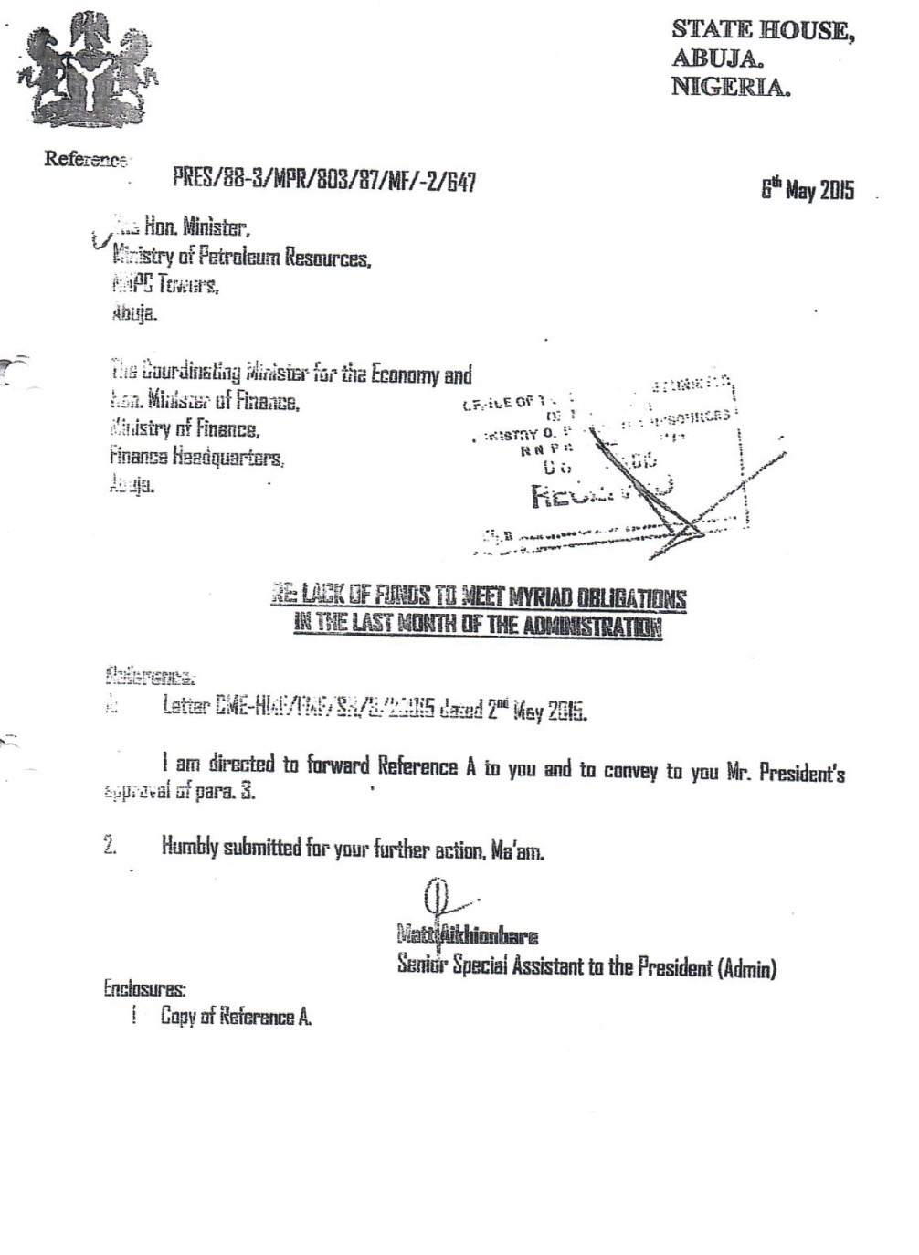 I am deeply disturbed and bewildered by recent media reports (Premium Times Thursday 12 January, 2017 and other dailies about the same time) claiming that by virtue of an order of the Federal High Court, I have forfeited to the Federal Government, the sum of $153.3m which I purportedly stole from the Nigerian National Petroleum Corporation, NNPC.