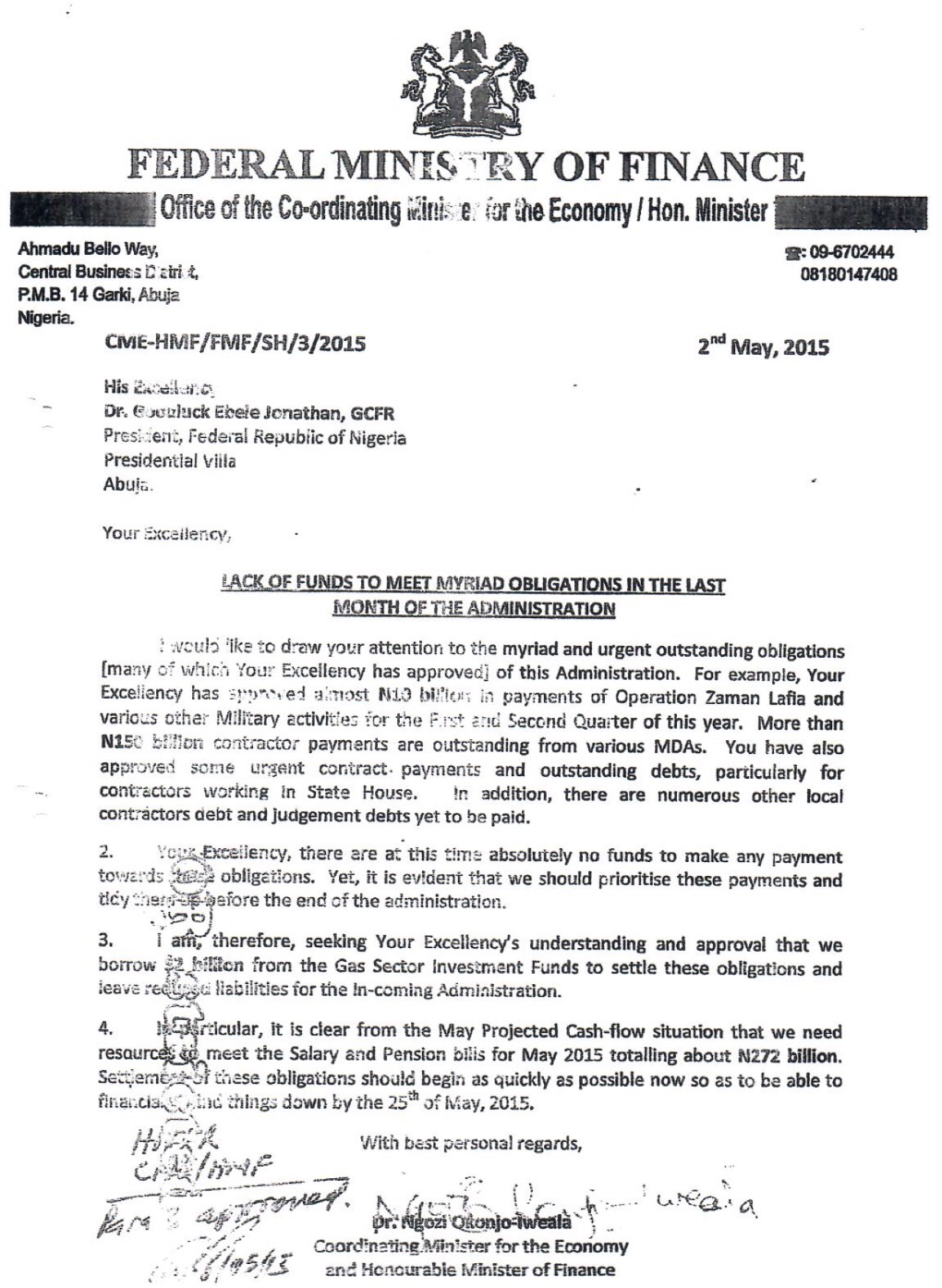 Let me state for the record that as Minister of Petroleum, the operation and management of NNPC finances were outside my purview as outlined in both the Petroleum Act and the NNPC Act. The only involvement I had in NNPC Finances was in terms of statutory matters, where the Petroleum Act prescribed that as Minister, there were certain duties or actions which I had to perform or take in relation to NNPC.