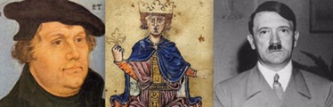 (From left to right): Luther, King Frederick II, Adolf Hitler