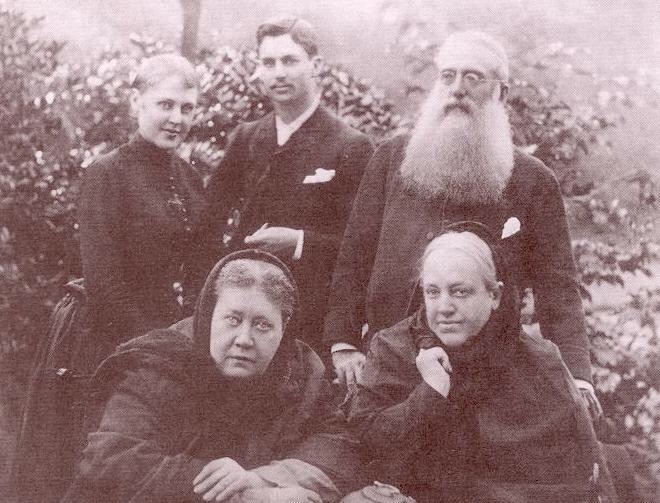 Clockwise from top left: Vera Johnston, Charles Johnston, Henry Olcott, Vera Zhelihovsky, and Helen Blavatsky, all of whom were leaders of the occult, Theosophical Society