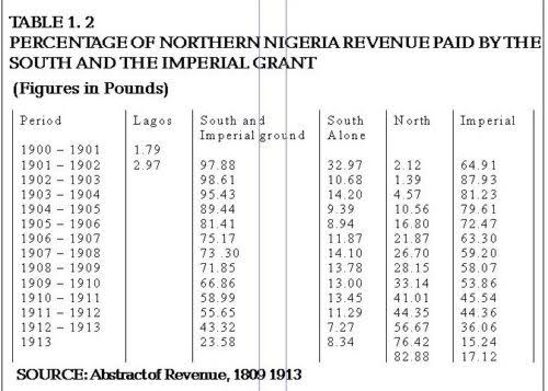 You will also see that the North could not have survive without the Imperial grant and the support of the South. When you look at the third table, Northern Nigeria revenue paid by the South and the Imperial grant, it will disabuse your mind and show you that without the South and the Imperial grant, the Northern government/states could not have existed.