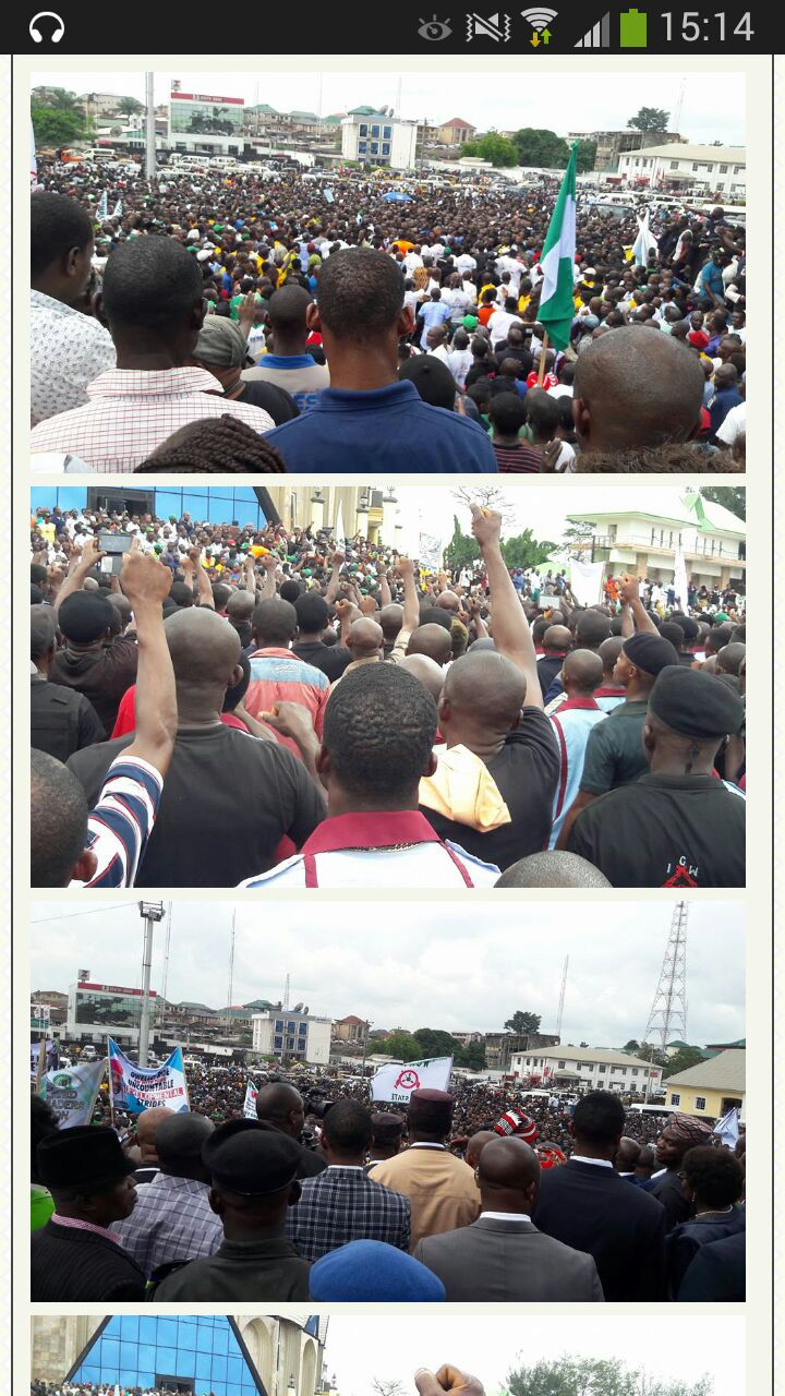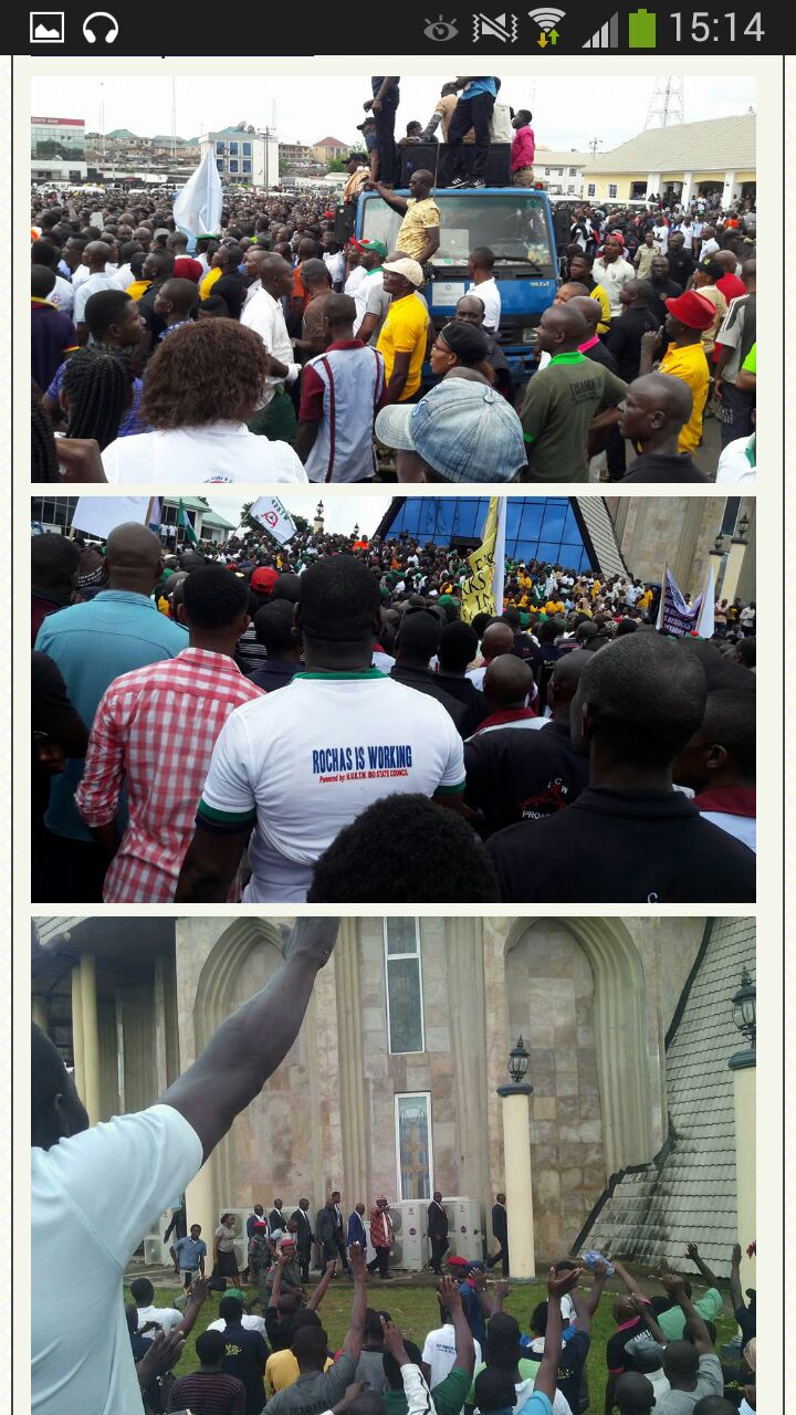 Thousands of Imo youths shut down Owerri in solidarity with the government of President Muhammadu Buhari and Governor Owelle Rochas Okorocha. According to reports, the people disclosed that they are very happy with Governor Okorocha and his rescue mission government in Imo state. See photos below