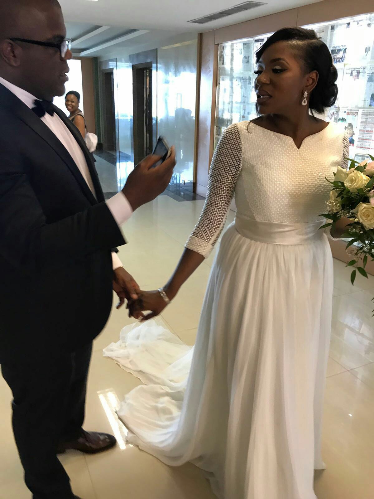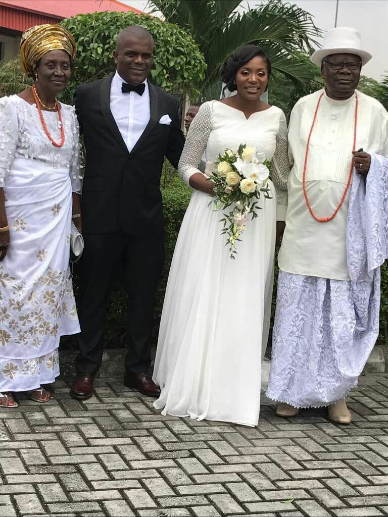 Big congratulations to Barr. Alfred Chukwuemeka Ndukuba on his recent knot tying with his long time beau Itohan the mother of his brand new daughter. The suave city yuppie businessman got married to his sweetheart Itohan on Saturday, august 26th in a lavish wedding in Lagos. It was a memorable reunion of old friends of the groom and bride and known society personalities who were entertained with breathtaking decor, meal courses, wines and spirits at the oriental hotel lagos ballroom.
