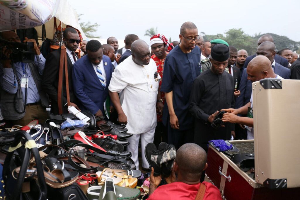 Prof. Yemi Osinbajo, as Acting President, came to Aba to hold a clinic with SME Producers in Aba. Afterwards, he signed into Law Executive Order Number 3, mandating all Federal Ministries, Departments and Agencies to ensure that they patronize Local Producers for all their procurements. Aba was copiously mentioned in that proclamation.