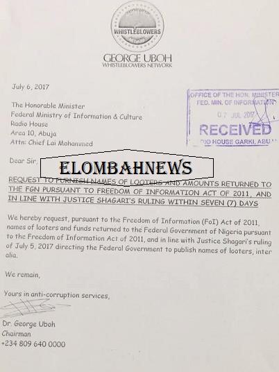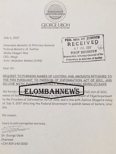 Responding, on August 2, 2017, Alhaji Mohammed agreed to furnish the names of looters and amount refunded in line with Justice Shagari’s ruling of July 5, 2017.
