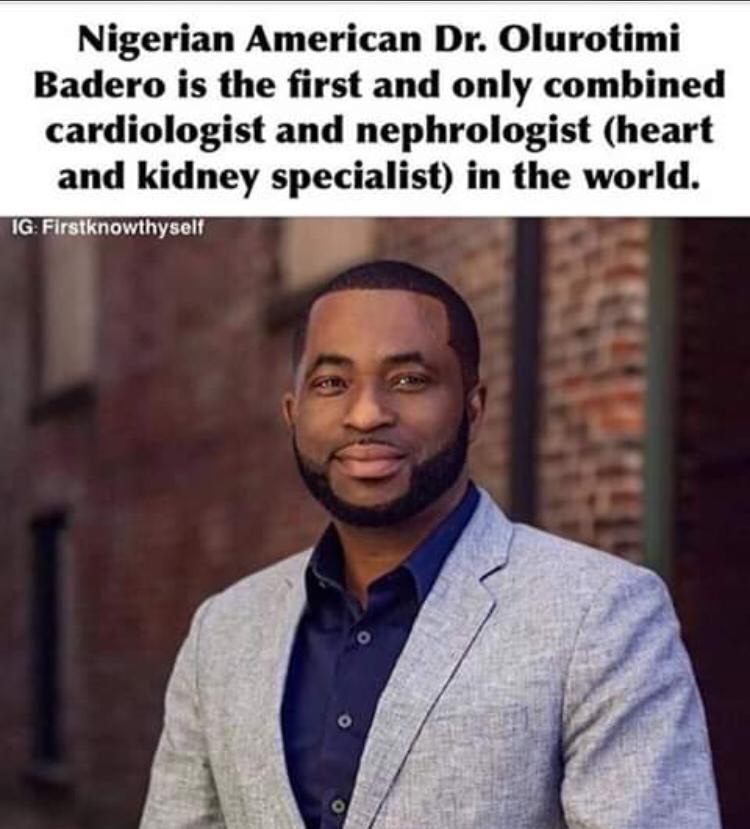 Born in Lagos, Nigeria and currently living in the U.S., Badero is now the only doctor in the world to have full specialist training and certifications in both cardiology and nephrology. In other words, he is the first and only person in the world to become a combined heart and kidney doctor.