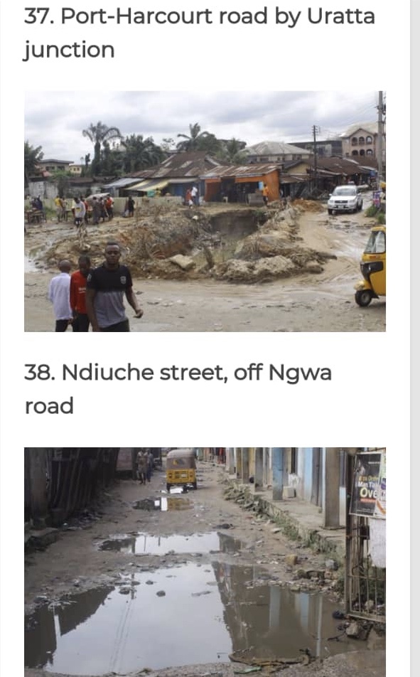 In the capital city, there is no evidence that Umuahia can compete with other state capitals in Nigeria. The state of decay of Aba is simply beyond description as I cannot imagine any town in this world like Aba.