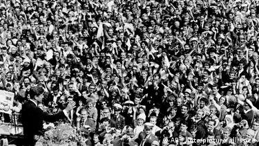Then the US president spoke the words that would go down in history: “Today, in the world of freedom, the proudest boast is: ‘Ich bin ein Berliner.’”