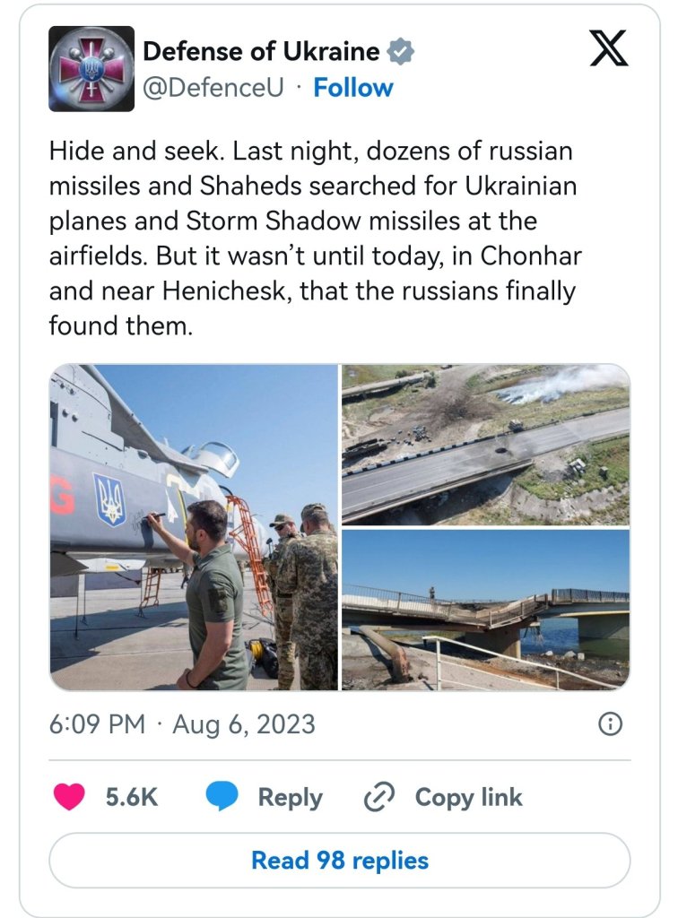 On Saturday, Ukraine launched some 12 Storm Shadows / SCALP-EGs at bridges connecting Crimea to the Kherson Region. At least three missiles made it through Russian-air defenses, according to local authorities, damaging two bridges across the Strait of Chongar and the Tonkiy Strait.