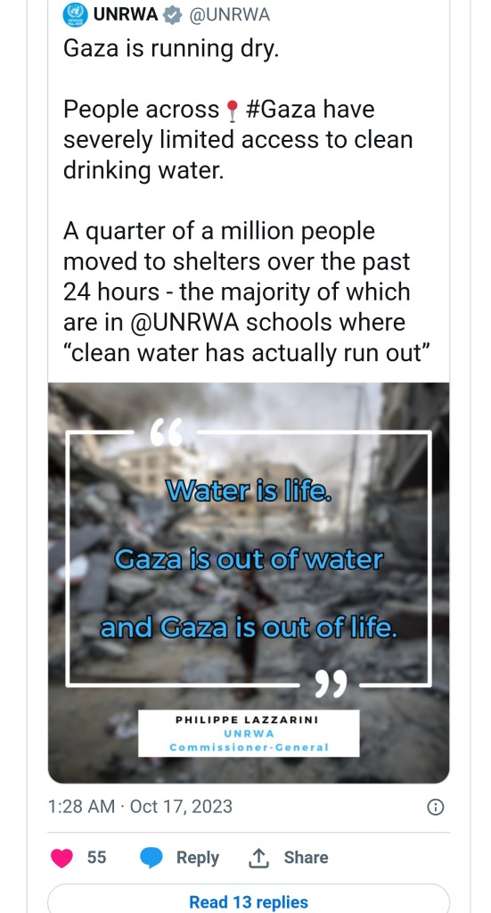 The United Nations Relief and Works Agency, however, has described the situation in Gaza an “unprecedented humanitarian catastrophe” and noted that the region is literally “running out of life.”