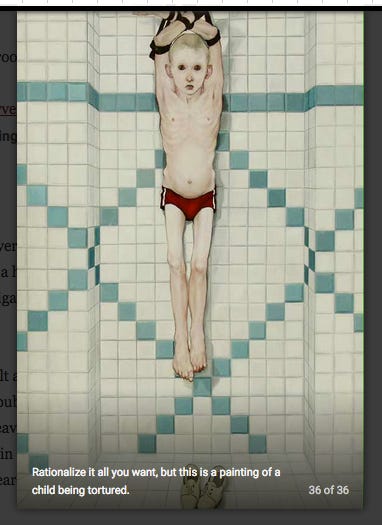 Okay, so you might be thinking, this is just art. Creepy, disgusting, completely detestable art. Perhaps these collectors are just weird, perhaps nothing untoward is going on beyond their niche palette for apparent scenes of child torture…