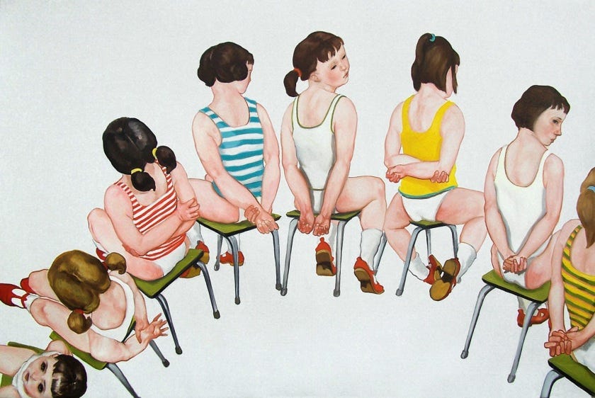 Imagine hanging these front and center in your foyer. Nothing says come on in, like a portrait of harnessed children awaiting their unthinkable fate…