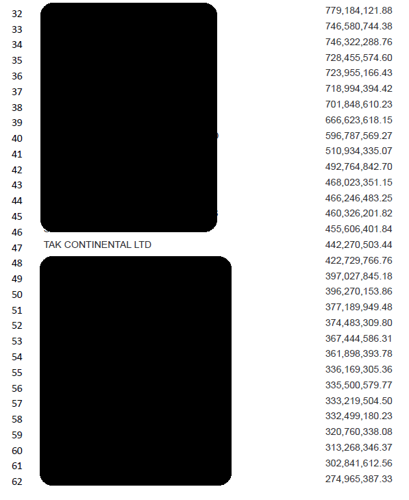 The companies left unredacted are all companies directly owned by or beneficially linked to Thomas Etuh.