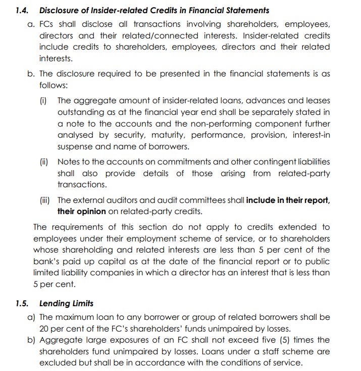 The Banks and Other Financial Institutions Act (BOFIA) 2020 and the CBN’s Prudential Guidelines contain multiple clauses that criminalise pretty much everything described above. The Prudential Guidelines for example, state that the maximum amount that can be given as a loan to a single borrower or group of related borrowers is 20 percent of the bank’s shareholder funds. Thomas Etuh himself claims that Unity Bank’s shareholders’ funds stood at N31 billion when he took charge, going up to N80 billion by the time he left. Putting aside the whistleblowers’ insistence that Unity Bank has in fact, been running with negative shareholders’ funds since 2016, if we are to use his own dodgy math, his NPL portfolio of N29 billion grossly exceeds the prudential guidelines both in the case of N31 billion SHF (93.5 percent) and N80 billion SHF (36.25 percent).