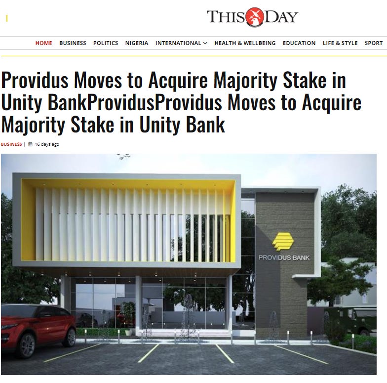 Worst of all, as confirmed by all sources, there is a plan afoot to cover up all these financial atrocities at Unity Bank by going into a merger with Providus Bank. This move is apparently being spearheaded by Thomas Etuh with the support of “allies” at the CBN.