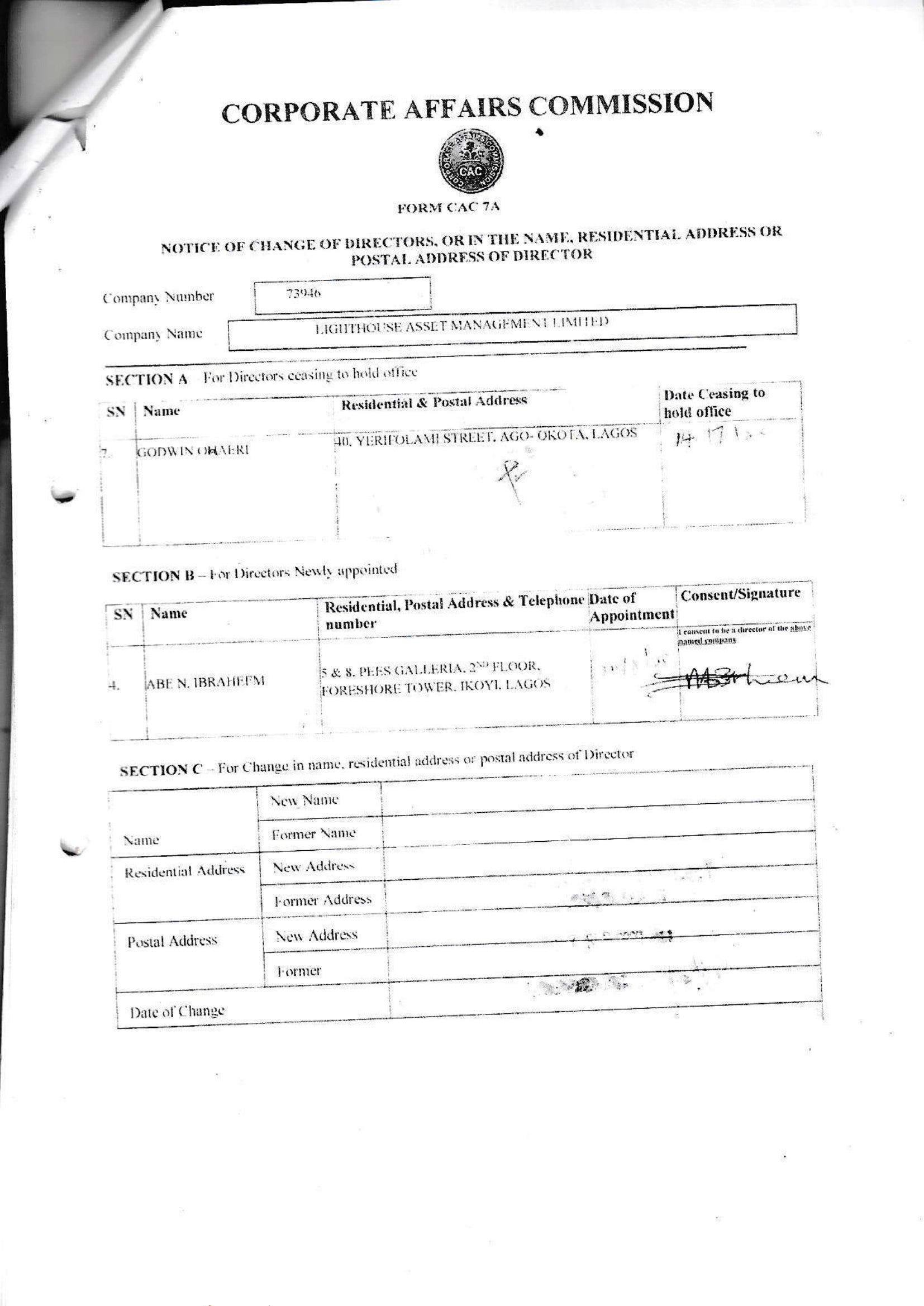 In case you are in any doubt about who is behind “Lighthouse Capital Limited,” the CAC document below should clear that up.