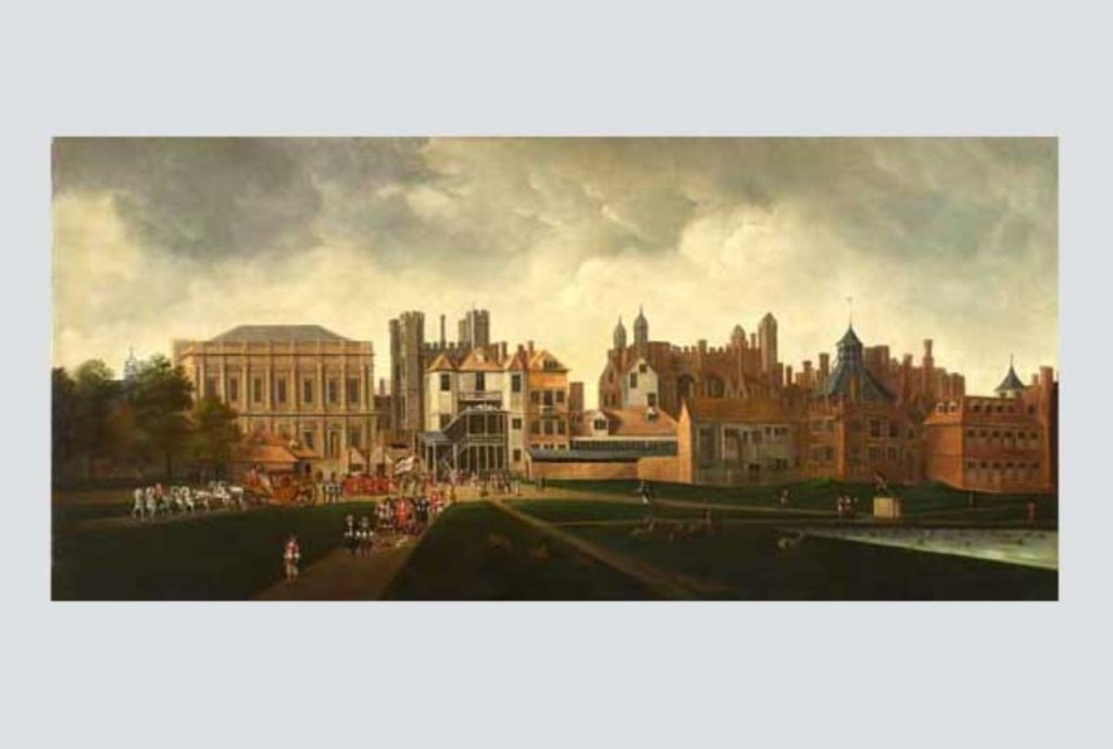 The huge residence included tennis courts, a tiltyard for jousting, a bowling green, and a cockpit for bird fights. Stretching from St James’s Park to the Thames, it was the official residence of Tudor and Stuart monarchs until it was destroyed by fire in 1698. It made the surrounding real estate some of the most important and valuable in London – and the natural home of power.