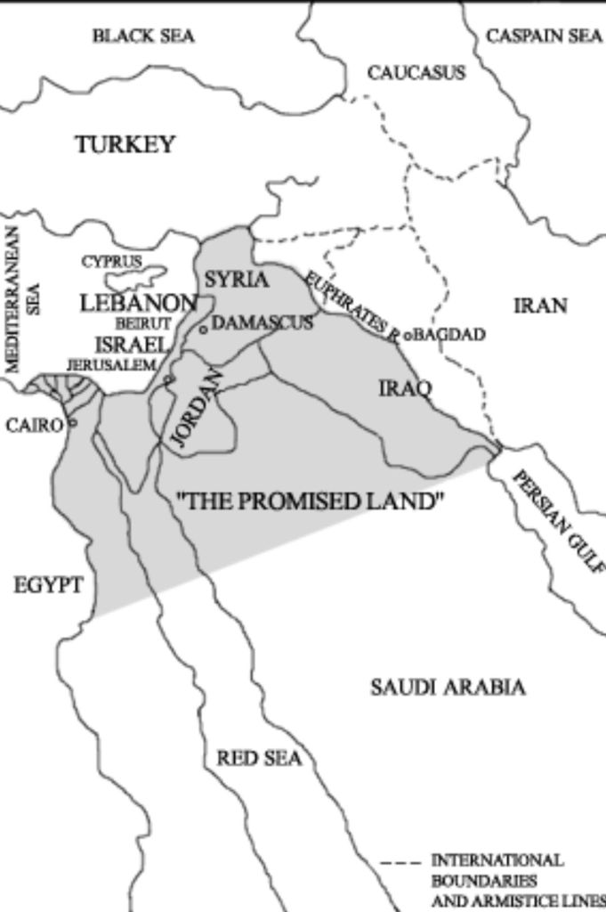 According to the founding father of Zionism Theodore Herzl, “the area of the Jewish State stretches: “From the Brook of Egypt to the Euphrates.” According to Rabbi Fischmann, “The Promised Land extends from the River of Egypt up to the Euphrates, it includes parts of Syria and Lebanon.”