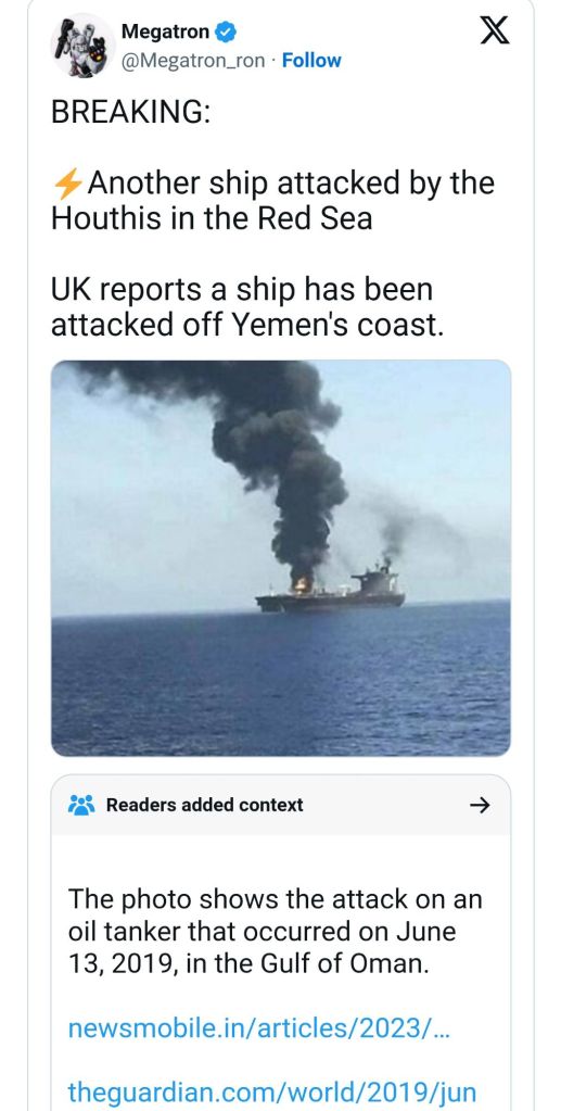 Are the American people aware of the damage that’s being caused by our blanket support of Israel? And these disruptions will likely balloon by many orders of magnitude once the US goes on the offensive and launches a war on the Yemeni mainland. Then we’ll see commercial shipping in the Red Sea grind to a standstill.