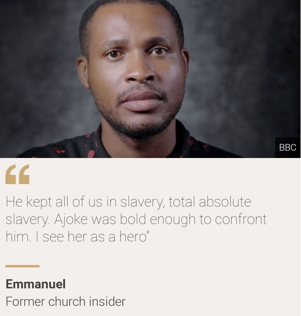 Ajoke says she was dragged out of his office and put in a room away from the rest of the church members, where she lived in social confinement for more than a year.